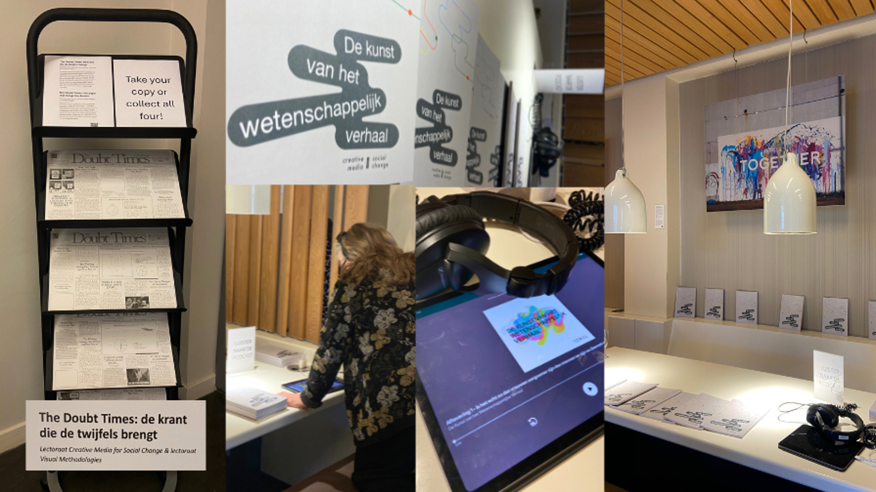 Afgelopen dinsdag was de opening van deze expositie en de publicaties van onze projecten ‘De Kunst van het Wetenschappelijke Verhaal’ en ‘Desinformatie in Kaart’ staan hier om in te bladeren en zelfs mee te nemen!