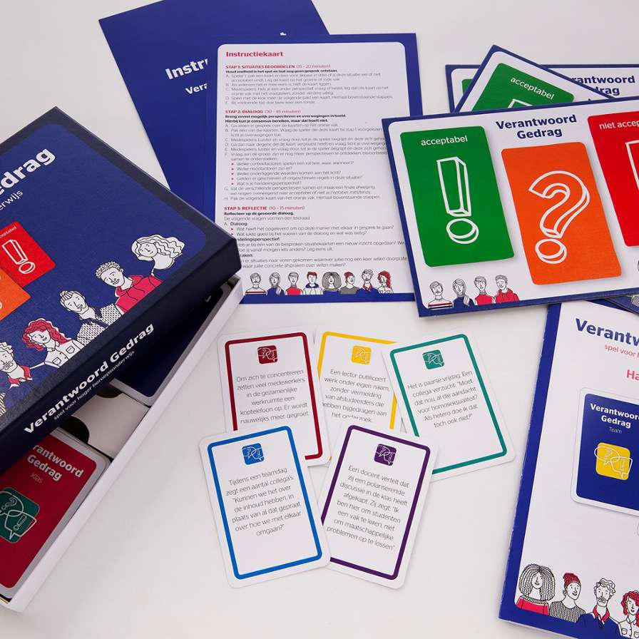 Het spel ‘Verantwoord Gedrag’ is een dilemmaspel voor het hoger beroepsonderwijs dat bedoeld is om op een laagdrempelige manier het gesprek over gedrag op gang te brengen.