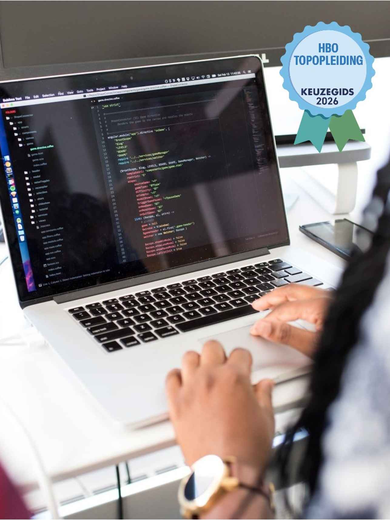 Tijdens de opleiding leer je om goede websites te bouwen. Je maakt daarvoor gebruik van echte opdrachten van echte opdrachtgevers. Samen met andere studenten maak je een ontwerp en ontwikkel je de code. Dit is de taal (HTML, CSS of Javascript) die de voorkant van de website koppelt aan de achterkant. Op die manier bouw je niet alleen een site die er goed uitziet, maar ook een die goed werkt. De opleiding duurt 2 jaar, verdeeld over 4 semesters.